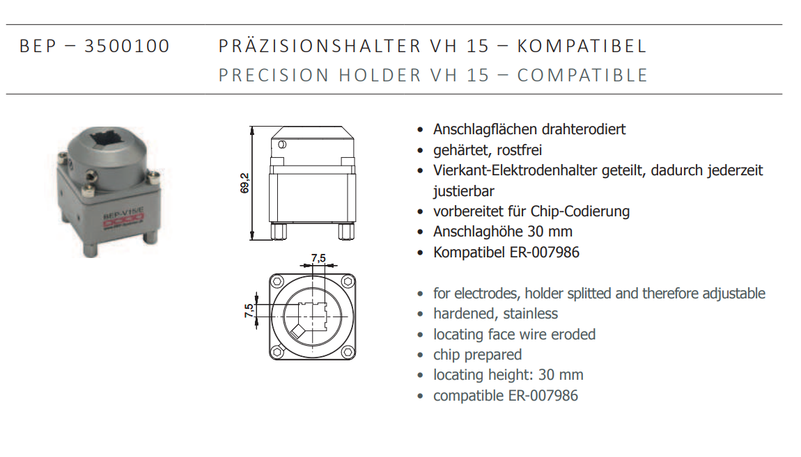 BEP-SYSTEME BEF-3500100 Precision Holder VH 15-Compatible,EROWA EDM tooling China manufacturer