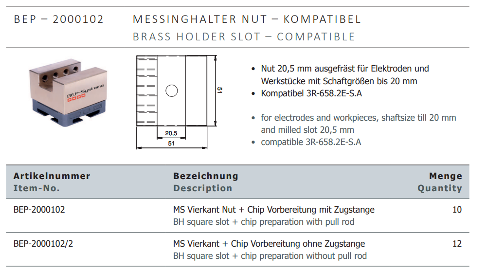 BEP-SYSTEME BEP-2000102 Brass Holder Slot-Compatible,EROWA EDM tooling China manufacturer
