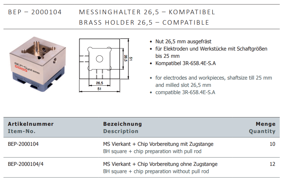 BEP-SYSTEME BEP-2000104 Brass Holder 26,5-Compatible,EROWA EDM tooling China manufacturer