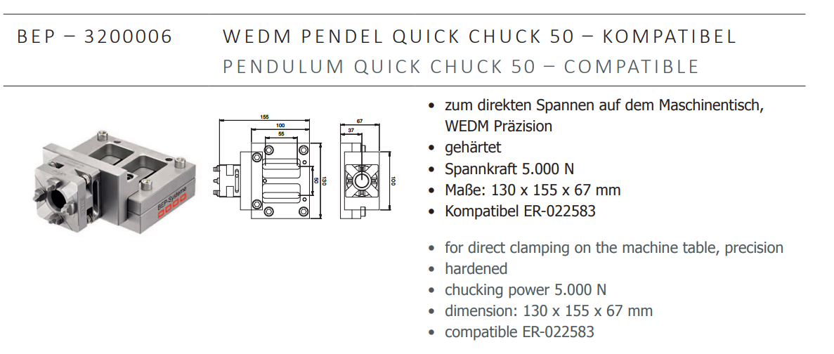 BEP-SYSTEME BEP-3200006 Pendulum Quick Chuck 50-Compatible,EROWA EDM tooling China manufacturer