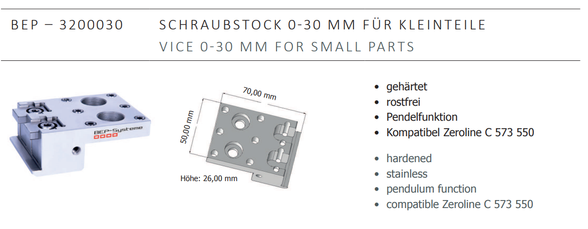 BEP-SYSTEME BEP-3200030 Vice O-30 mm For Small Parts,EROWA EDM tooling China manufacturer
