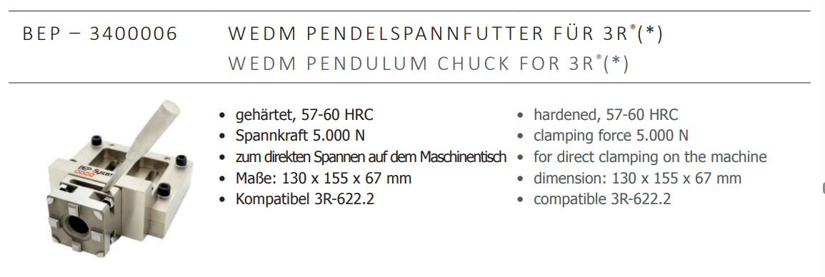 BEP-SYSTEME BEP-3400006 Wedm Pendulum Chuck For 3R ,EROWA EDM tooling China manufacturer