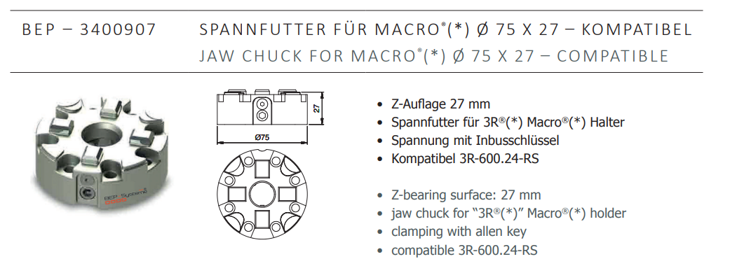 BEP-SYSTEME BEP-3400907 Jaw Chuck For Macro Diameter 75X27-Compatible,EROWA EDM tooling China manufacturer
