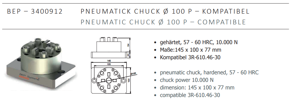 BEP-SYSTEME BEP-3400912 Pneumatic Chuck100P-Compatible,EROWA EDM tooling China manufacturer