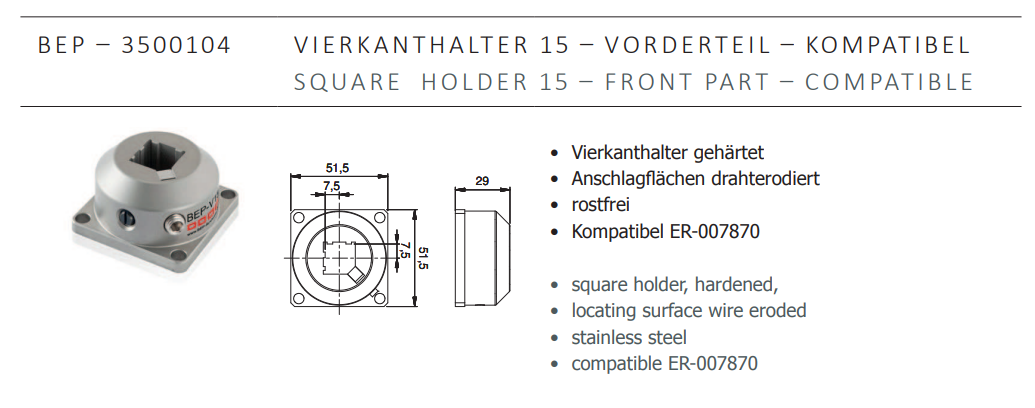 BEP-SYSTEME BEP-3500104 Square Holder15-Frontpart-Compatible,EROWA EDM tooling China manufacturer