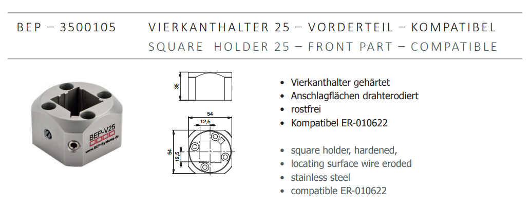 BEP-SYSTEME BEP-3500105 Square Holder25-Frontpart-Compatible,EROWA EDM tooling China manufacturer