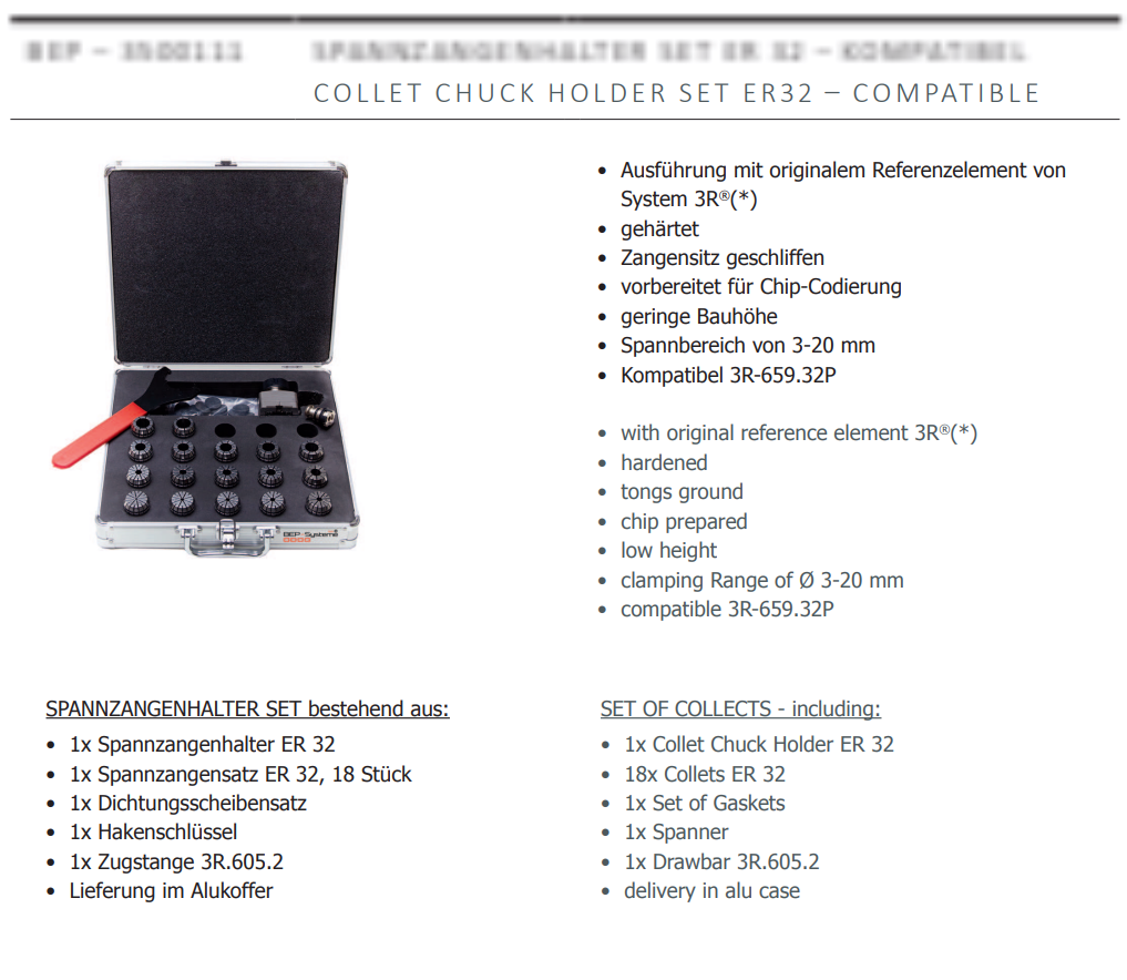 BEP-SYSTEME BEP-3500111 Collet Chuck Holder Set ER32-Compatible,EROWA EDM tooling China manufacturer