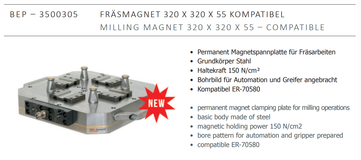 BEP-SYSTEME BEP-3500305 Milling Magnet 320X320X55-Compatible,EROWA EDM tooling China manufacturer