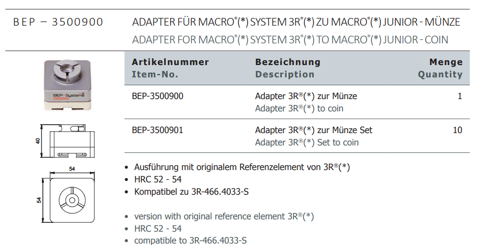 BEP-SYSTEME BEP-3500900 Adapter For Macro System 3R To Macro Junior -Coin,EROWA EDM tooling China manufacturer