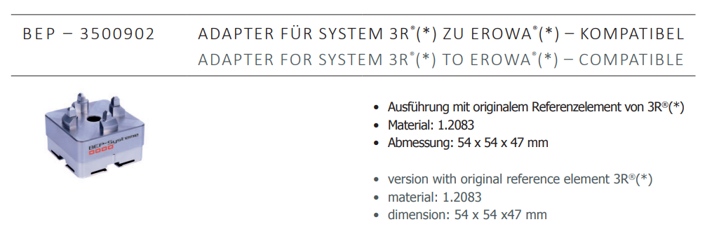 BEP-SYSTEME BEP-3500902 Adapter For System 3R To Erowa -Compatible,EROWA EDM tooling China manufacturer