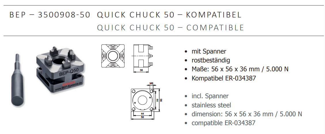 BEP-SYSTEME BEP-3500908-50 Quick Chuck 5O- Compatible,EROWA EDM tooling China manufacturer