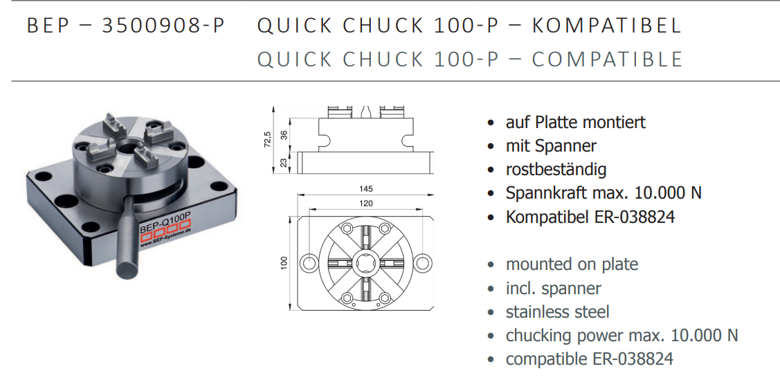 BEP-SYSTEME BEP-3500908-P Quick Chuck100-P- Compatible,EROWA EDM tooling China manufacturer