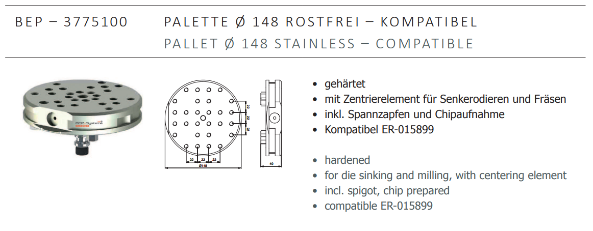 BEP-SYSTEME BEP-3775100 Pallet Diameter 148 Stainless-Compatible,EROWA EDM tooling China manufacturer