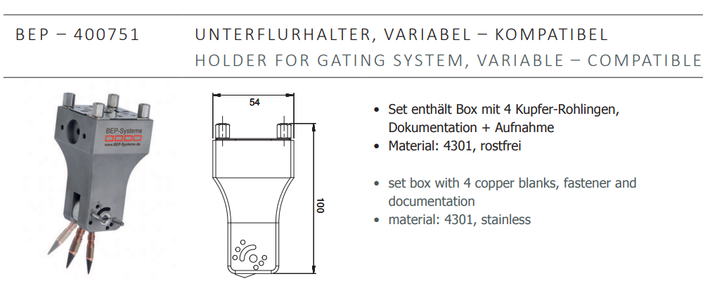 BEP-SYSTEME BEP-400751 Holder For Gating System,Variable-Compatible,EROWA EDM tooling China manufacturer
