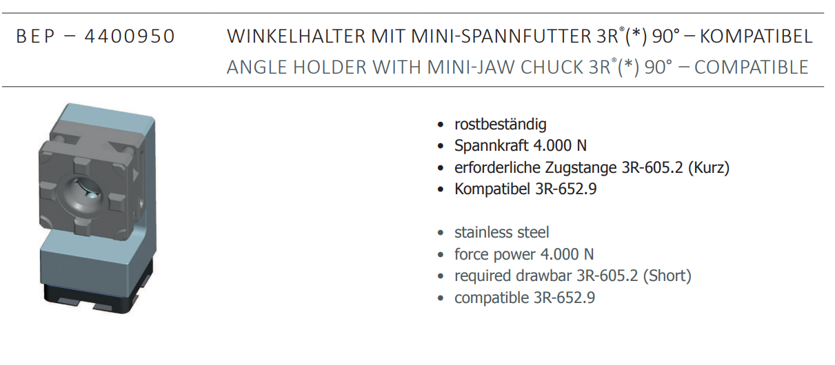 BEP-SYSTEME BEP-4400950 Angle Holder With Mini-Jaw Chuck 3R 90 degrees-Compatible,EROWA EDM tooling China manufacturer