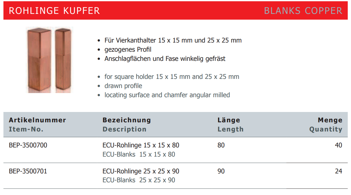 BEP-SYSTEME Blanks Copper For Square Holder 15 X 15 mm And 25 X 25 ,EROWA EDM tooling China manufacturer