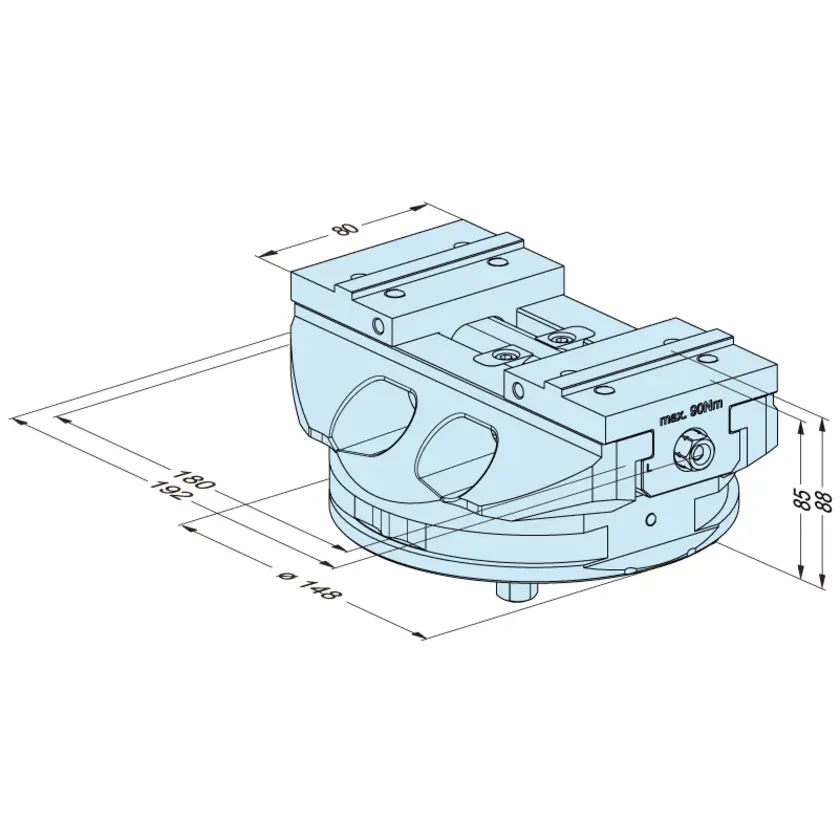 Blank vise 148 P, excluding camping jaw and chucking spigots.