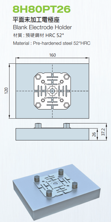 CGM 8H80PT26 Blank Electrode Holder,EDM tooling fixture EROWA 3R alternative China Manufacturer