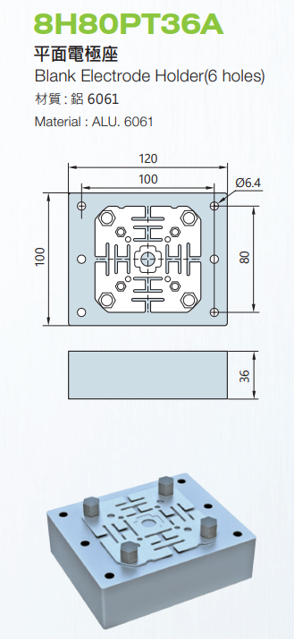 CGM 8H80PT36A Blank Electrode Holder(6 holes),EDM tooling fixture EROWA 3R alternative China Manufacturer