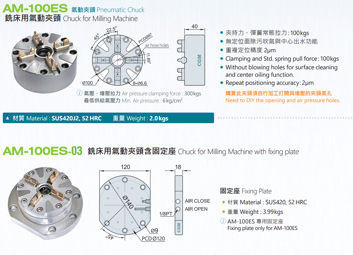 CGM AM-100ES Pneumatic Chuck for Milling Machine,EDM tooling fixture EROWA 3R alternative China Manufacturer