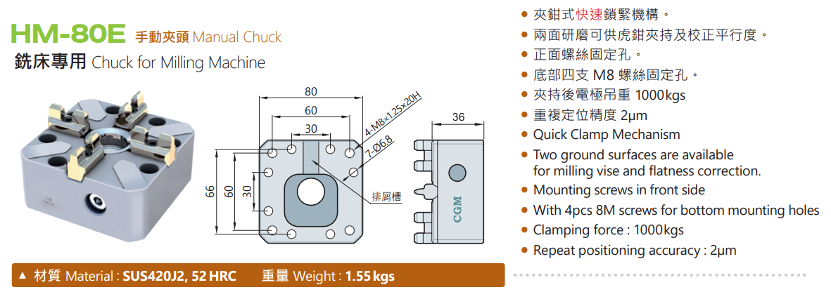 CGM HM-80E Manual Chuck for Milling Machine,EDM tooling fixture EROWA 3R alternative China Manufacturer