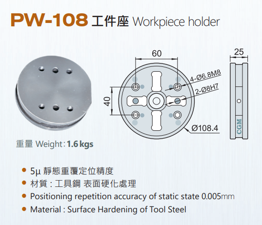 CGM PW-108 Workpiece holder,EDM tooling fixture EROWA 3R alternative China Manufacturer