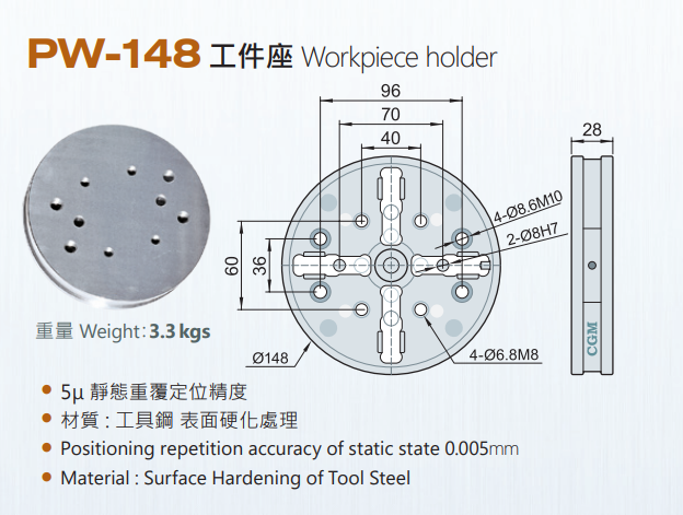 CGM PW-148 Workpiece holder,EDM tooling fixture EROWA 3R alternative China Manufacturer