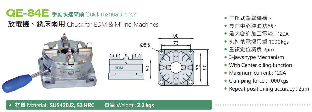 CGM QE-84E Quick manual Chuck for EDM & Milling Machines,EDM tooling fixture EROWA 3R alternative China Manufacturer