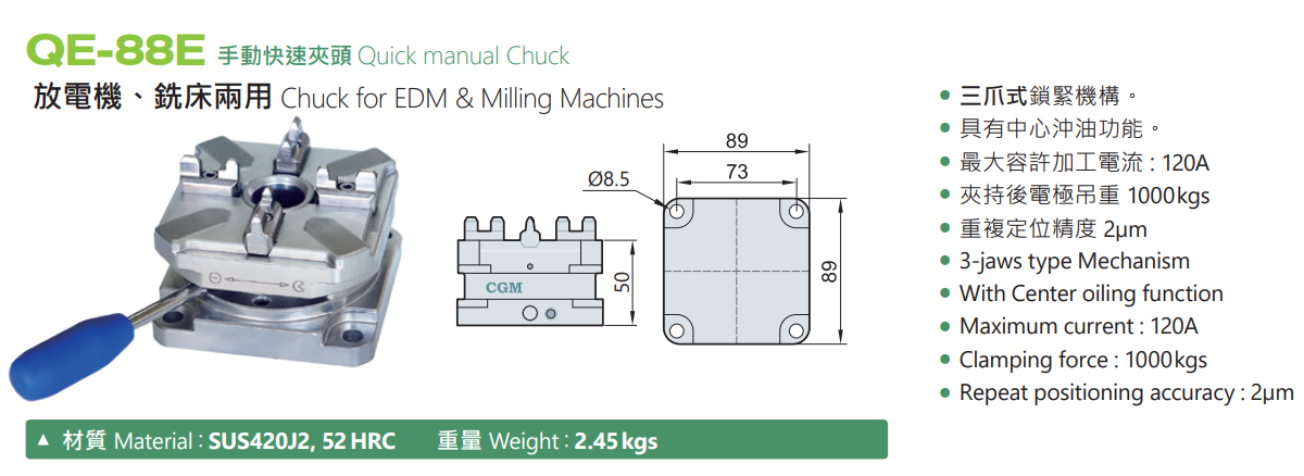 CGM QE-88E Quick manual Chuck for EDM & Milling Machines,EDM tooling fixture EROWA 3R alternative China Manufacturer