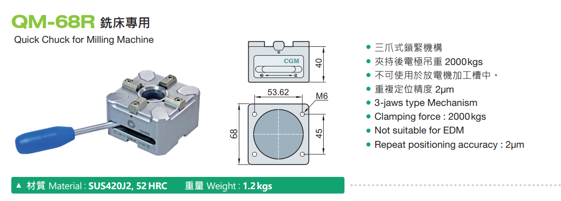 CGM QM-68R Quick Chuck for Milling Machine,EDM tooling fixture EROWA 3R alternative China Manufacturer
