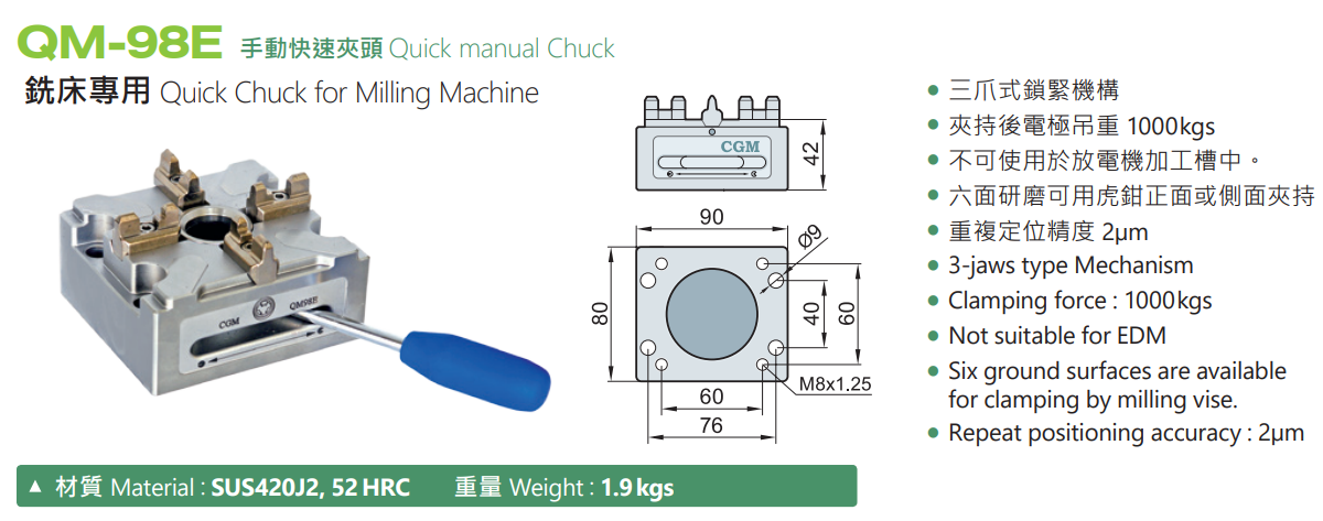 CGM QM-98E Quick manual Chuck for Milling Machine,EDM tooling fixture EROWA 3R alternative China Manufacturer