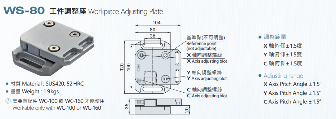 CGM WS-80 Workpiece Adjusting Plate,EDM tooling fixture EROWA 3R alternative China Manufacturer