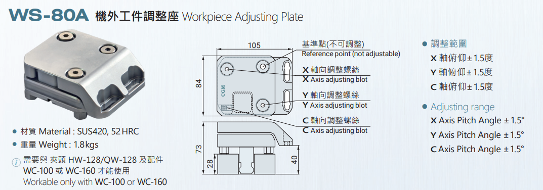CGM WS-80A Workpiece Adjusting Plate,EDM tooling fixture EROWA 3R alternative China Manufacturer