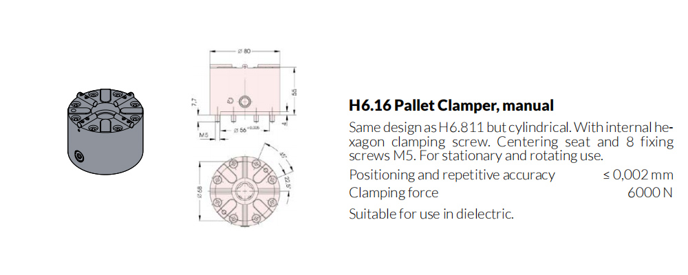 Clamping System 5000 For sinking EDM and chipping machines H6.16 Pallet Clamper, manual Hirschmann,tooling fixture China manufacturer