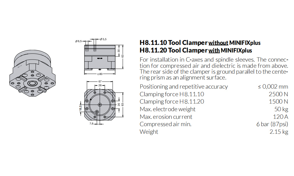 Clamping System 5000 For sinking EDM and chipping machines H8.11.10 Tool Clamper without MiINlFlXplus Hirschmann,tooling fixture China manufacturer