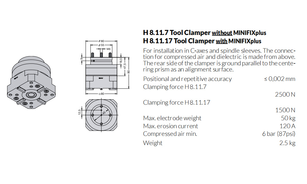 Clamping System 5000 For sinking EDM and chipping machines H8.11.7 Tool Clamper without MINlFlXplus Hirschmann,tooling fixture China manufacturer
