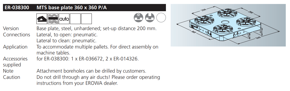 EROWA ER-038300 MTS base plate 360 x 360 P/A,China manufacturer EMD Tooling fixture