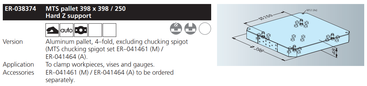 EROWA ER-038374 MTS pallet 398 x 398 / 250 Hard Z support,China manufacturer EMD Tooling fixture