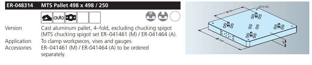 EROWA ER-048314 MTS Pallet 498 x 498 / 250,China manufacturer EMD Tooling fixture