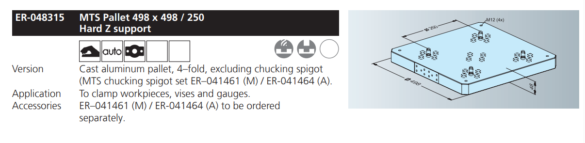 EROWA ER-048315 MTS Pallet 498 x 498 / 250 Hard Z support,China manufacturer EMD Tooling fixture