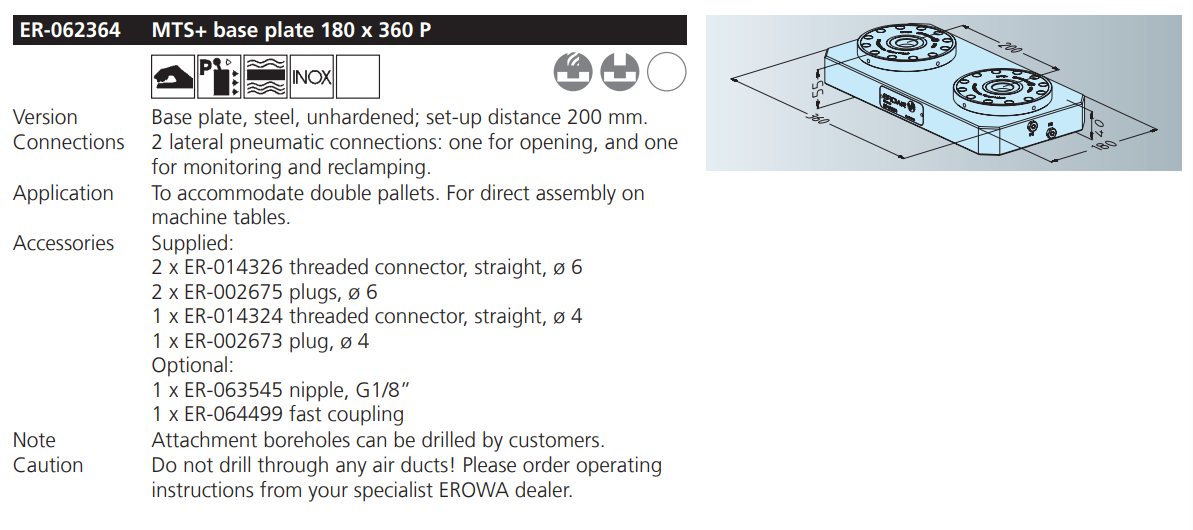 EROWA ER-062364 MTS+ base plate 180 x 360 P,China manufacturer EMD Tooling fixture