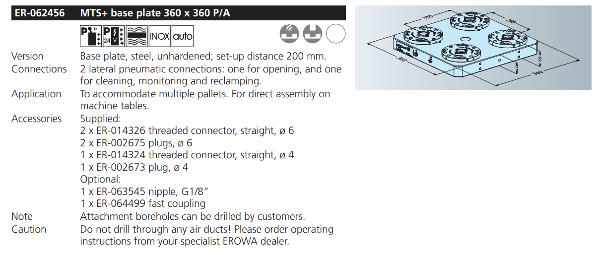 EROWA ER-062456 MTS+ base plate 360 x 360 P/A,China manufacturer EMD Tooling fixture