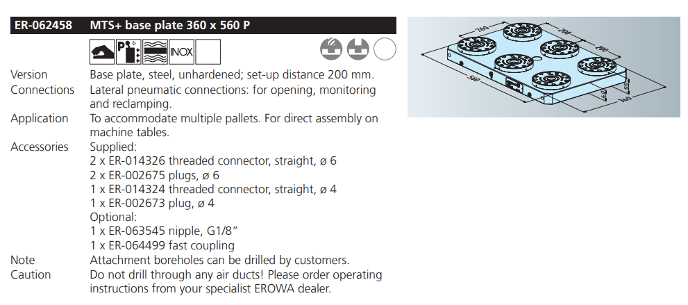 EROWA ER-062458 MTS+ base plate 360 x 560 P,China manufacturer EMD Tooling fixture