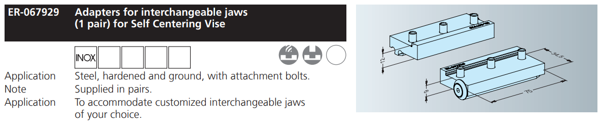 EROWA ER-067929 Adapters for interchangeable jaws (1 pair) for Self Centering Vise,China manufacturer EMD Tooling fixture