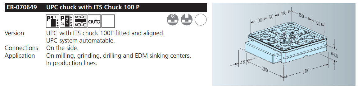 EROWA ER-070649 UPC chuck with its Chuck 100 P,China manufacturer EMD Tooling fixture