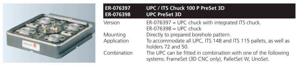 EROWA ER-076397 UPC / ITS Chuck 100 P PreSet 3D,China manufacturer EMD Tooling fixture