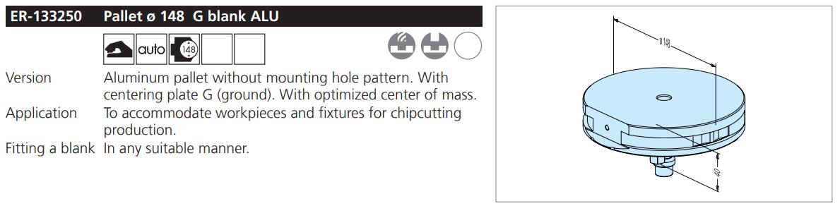 EROWA ER?133250 Pallet diameter 148 G blank ALU,China manufacturer EMD Tooling fixture