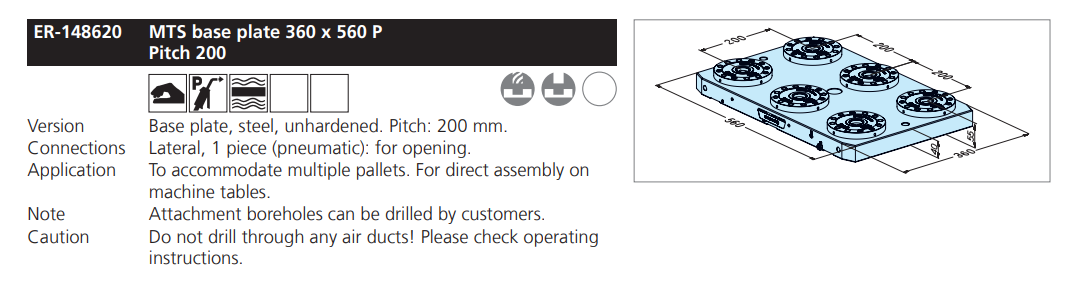 EROWA ER?148620 MTS base plate 360 x 560 P Pitch 200,China manufacturer EMD Tooling fixture