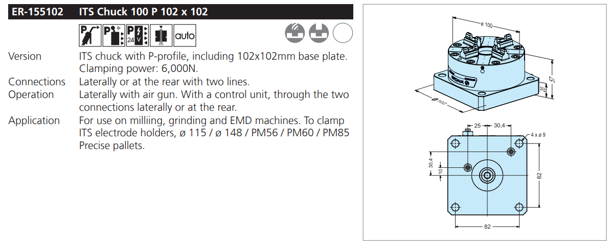 EROWA ER?155102 ITS Chuck 100 P 102 x 102,China manufacturer EMD Tooling fixture