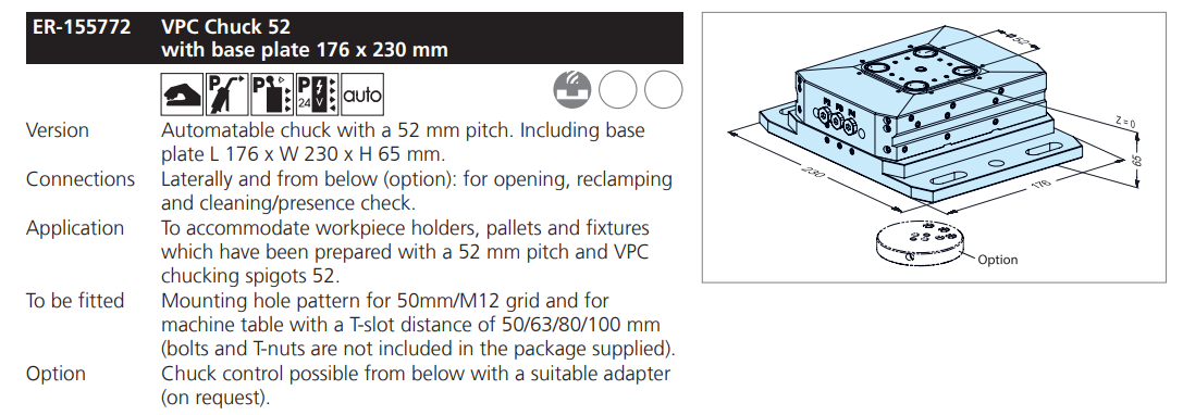 EROWA ER?155772 VPC Chuck 52 with base plate 176 x 230 mm,China manufacturer EMD Tooling fixture